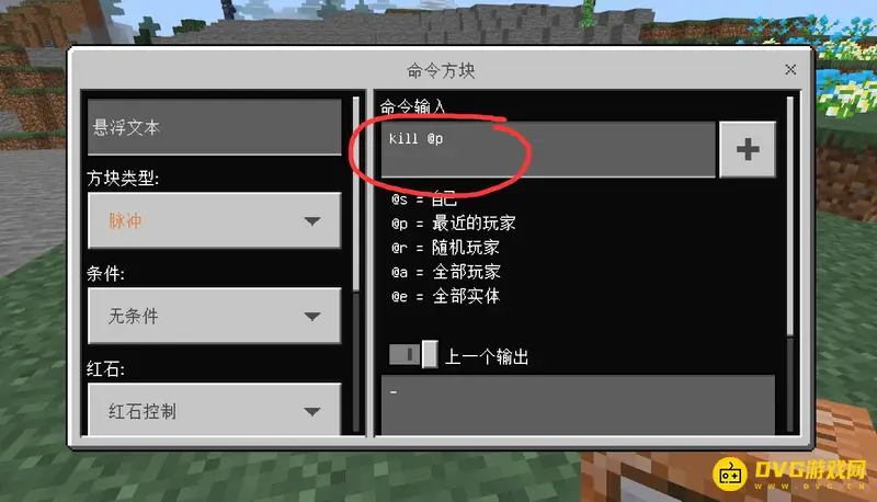 3,接着把命令方块放在地上,在里面输入kill @p。