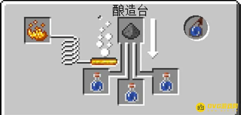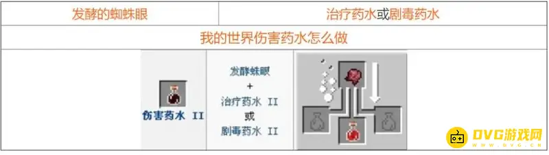 8、伤害药水。材料:发酵的蜘蛛眼 治疗药水或剧毒药水
