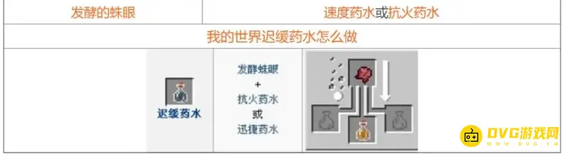 4、迟缓药水。材料:发酵的蛛眼 速度药水或抗火药水