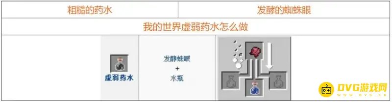 16、虚弱药水。材料:粗糙的药水 发酵的蜘蛛眼