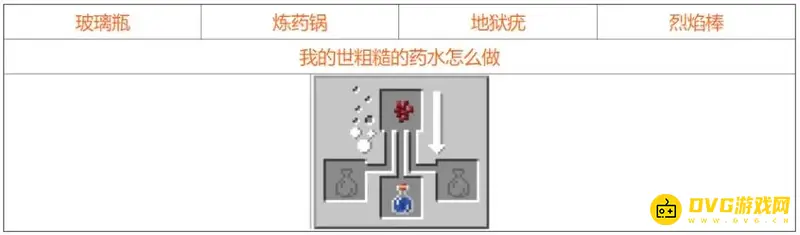 4、平凡的药水。材料:恶魂之泪、闪烁的西瓜、烈焰粉、岩浆膏、糖或者是蜘蛛眼 水瓶