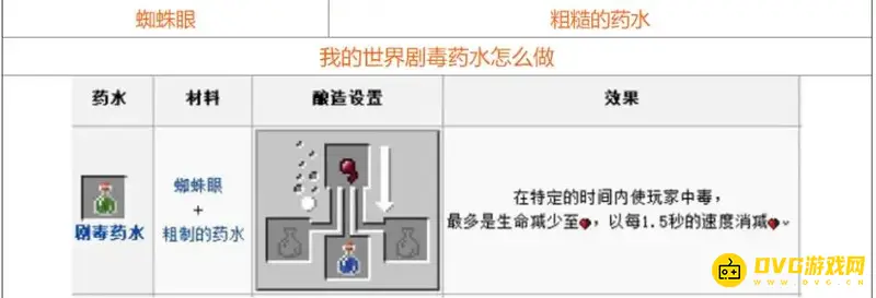 7、剧毒药水。材料:蜘蛛眼 粗糙的药水