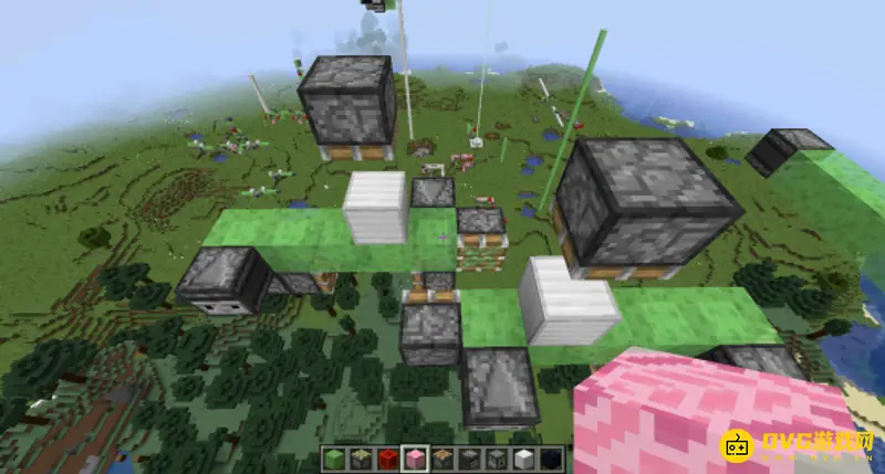 4、阻挡方块:这里要用陶瓷,这样挡一下,然后连个铁块随着下推部件一起下去就可以了。