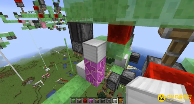 1、零延时的电路制作:因为世吞需要让排水机或轰炸机同时运作,那么零延时的电路作用显得非常重要,这里我们利用红石块和粘性活塞的互动来制作0延时电路。这个就是世吞常用的0延时骨架,当我敲掉最右边的红石块时,所有的骨架会同时下降一格。