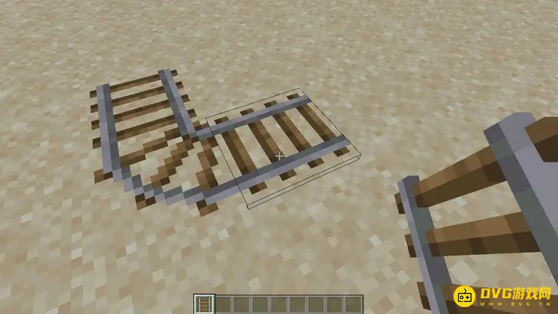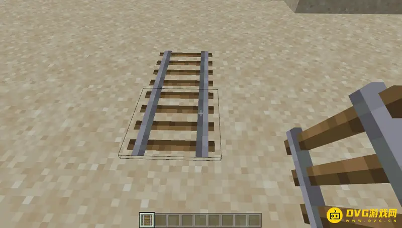 1,放置三个铁轨,最后一个铁轨放在侧面就可以转弯了,首先我们需要放置两个铁轨在地面上。