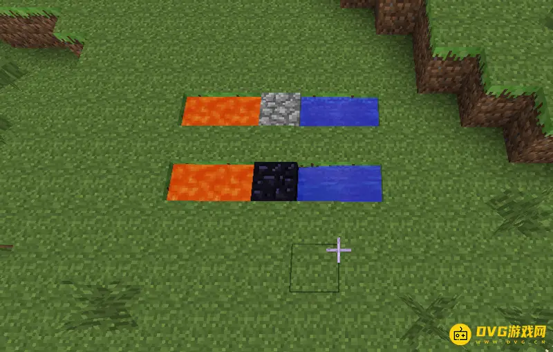 1.黑曜石,石头采集:在挖好的地槽里面在两端放置水和岩浆,交替接触就会生成石头和黑曜石了。