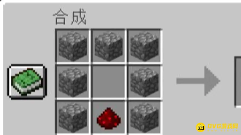 第二步我们需要准备七块原石跟一块红石按照我的摆放方法在工作台合成投掷器。