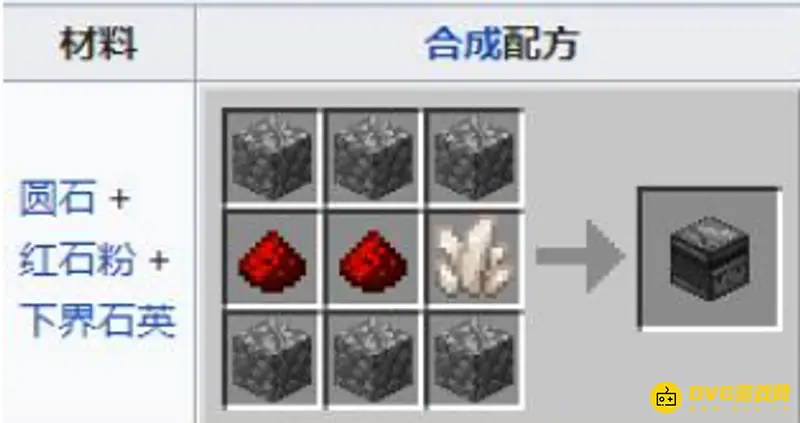 我的世界侦查者需要材料圆石、红石粉、下界石英,之后点击工作台,上方和下方布置圆石,各三块,中间最左侧布置2块红石,右侧布置一块下界石英,之后即可合成侦查者。