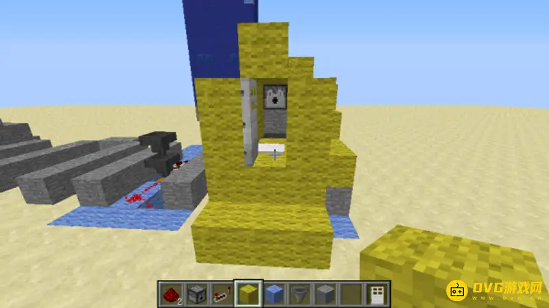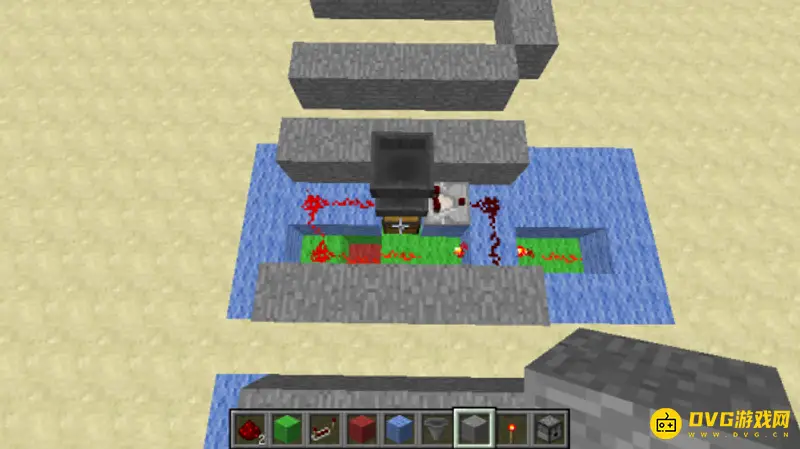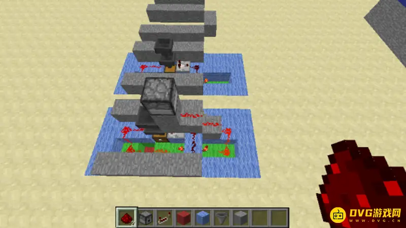 2、摆上红石和其他组件(羊毛只是为了看得清楚,不需要换地面)。
