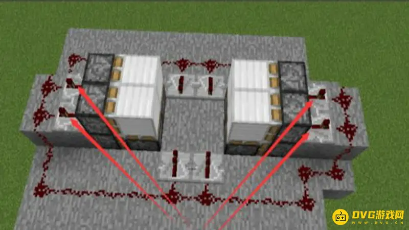 5.用红石线连上,并且将图中4个中继器调为3/4挡。