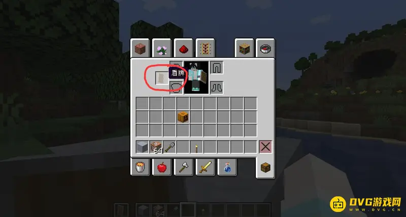 3,还有一种方法是按E打开背包,然后把盾牌放在左手的位置就可以了。