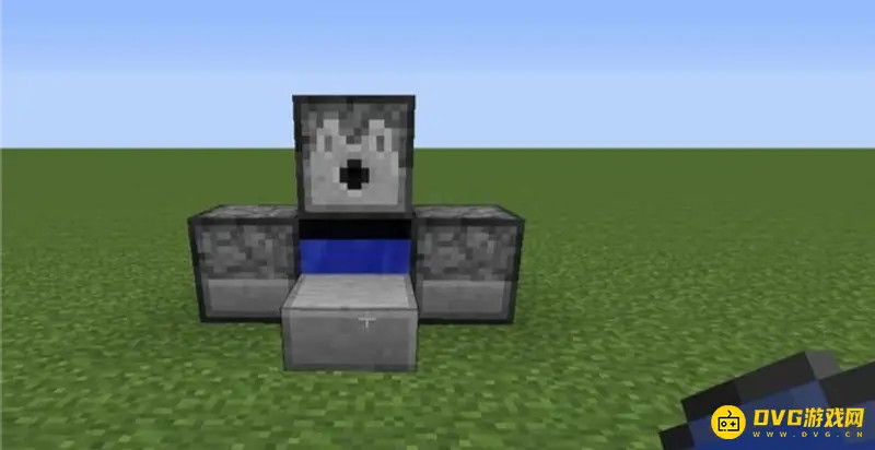 2.在半成品大炮前放置一块半砖,并倒入一桶水,保证TNT既可以发射出来又不破坏地形