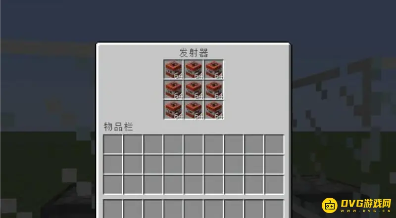 1.将发射器摆放成图中样式,在后方位置插根红石火把,并在红石火把前再放置一个发射器
