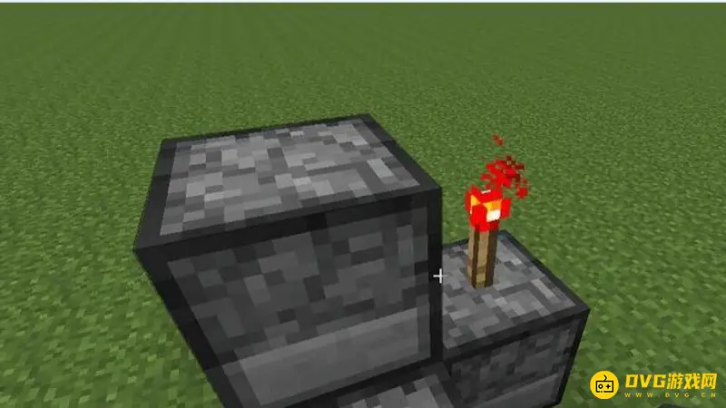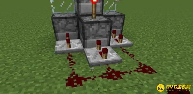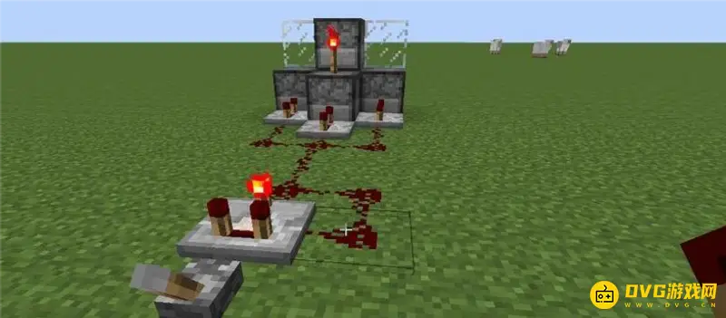 5.延伸出两格红石并放置一个红石比较器,把比较器点亮,比较器的右方使用红石连接,并加上拉杆