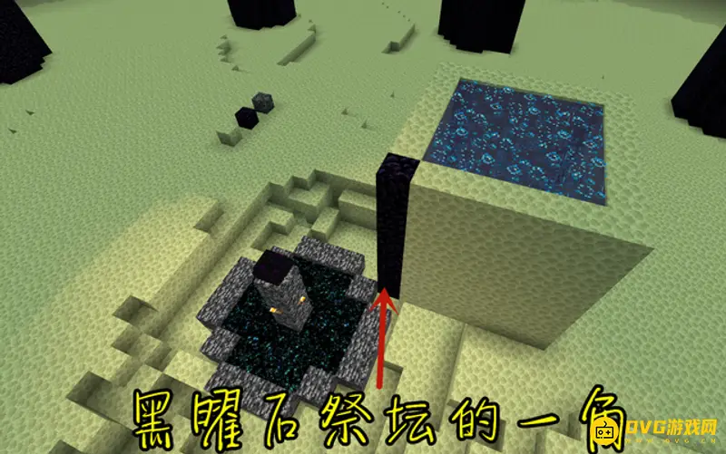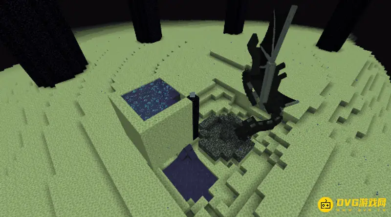 2、按照下图利用末地石建造出一个长宽5格以上,深度在6格以上的水潭,然后再在底部铺上灵魂沙,制作出上升气泡柱。