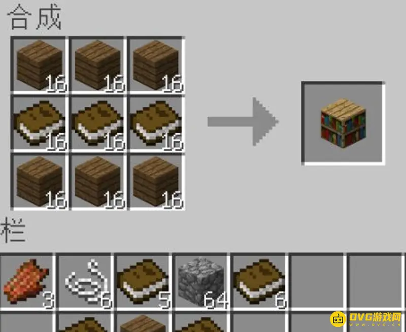 2.然后点开工作台用16个木头,16本书,16个木头合成16个书架。