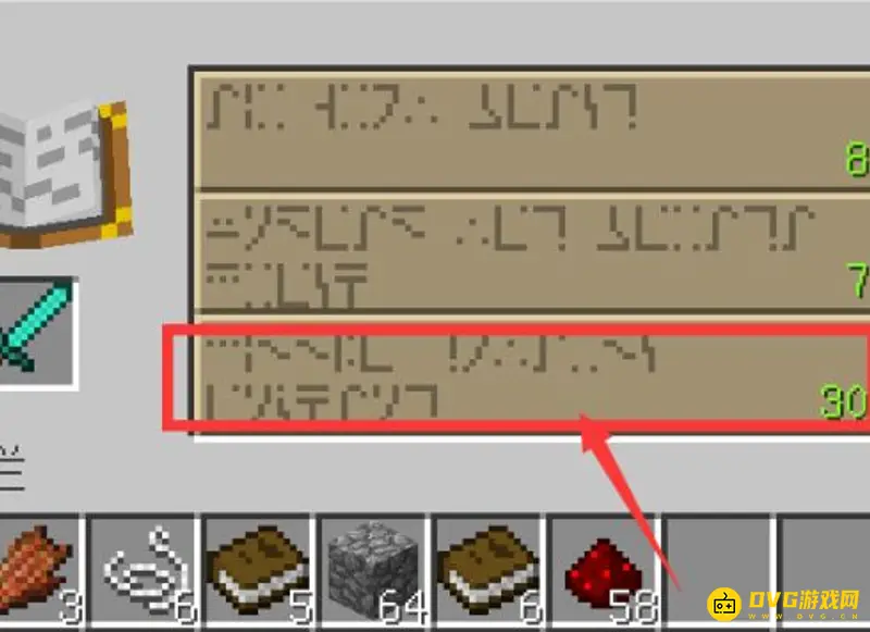 6.然后将钻石剑放进去,选择最后一个需要消耗30级别的经验。