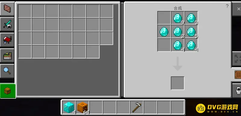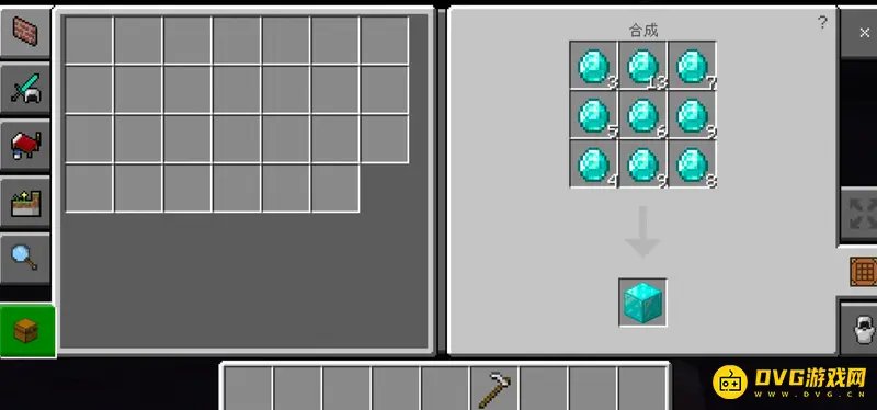 2、所需要的材料:四个钻石块、一个南瓜、一把铁锄。