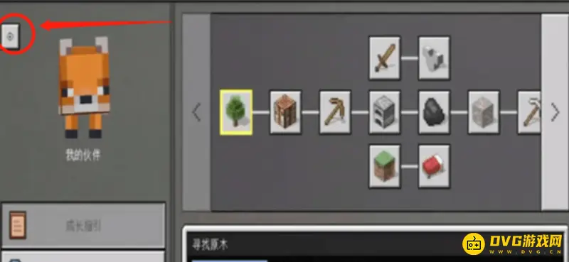1.游戏中狐狸可以作为你的伙伴,在旁边一直陪着你,如果想要关闭狐狸,首先点击屏幕上方的倒三角按钮。
