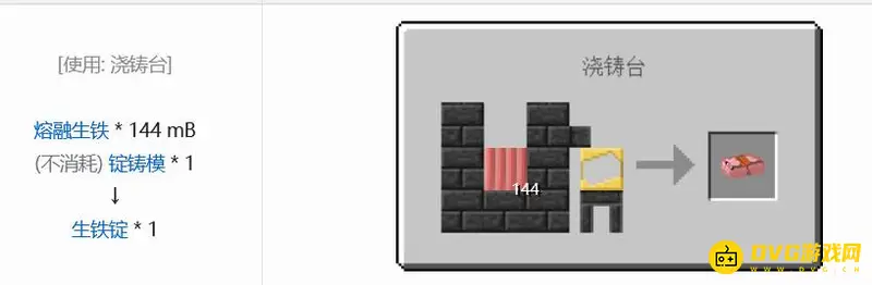 生铁锭需要通过锻造得到,消耗材料融融生铁144MB和一个锭铸模,生铁锭可以用于合成或者浇筑部件。可制成普通工具部件和弓臂。