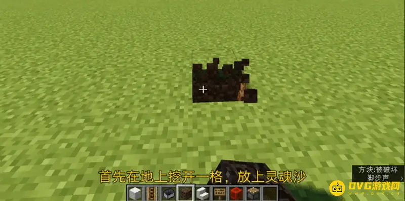1、首先在地上挖开一格放上灵魂沙,然后在灵魂沙上方放一个方块,在方块上放上铁轨和矿车,敲掉方块让矿车自然掉落到灵魂沙上方。