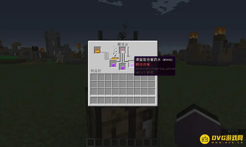 最后,用龙息将喷溅性瞬间伤害药水变为滞留型瞬间伤害药水。