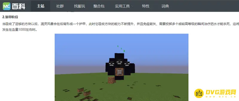 装甲阶段:当吸收了足够的方块以后,凋灵风暴会在后背形成一个护甲。