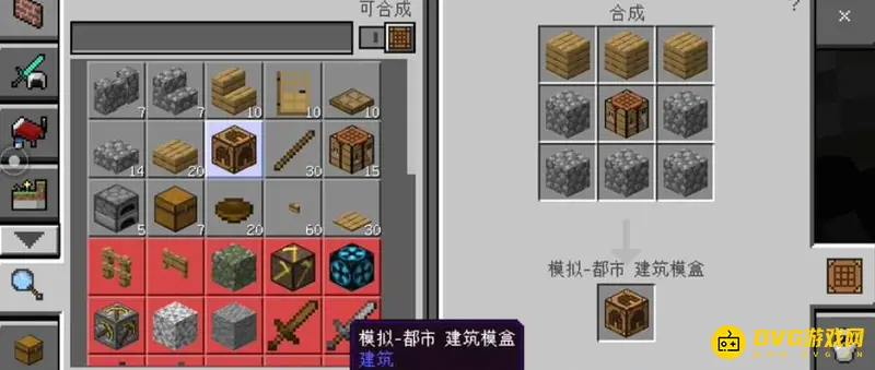 合成方式:将收集的材料在合成台按照下图位置摆放,即可做出模拟城市建筑盒子