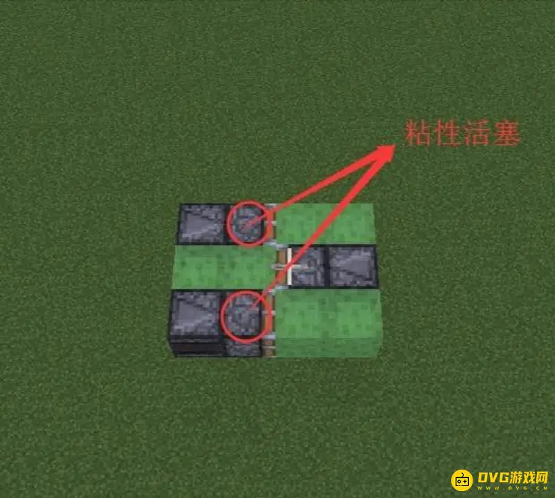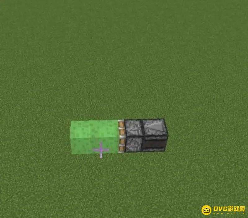 1、首先确定好高度后,放置一个活塞。活塞的前方放两个粘液块。