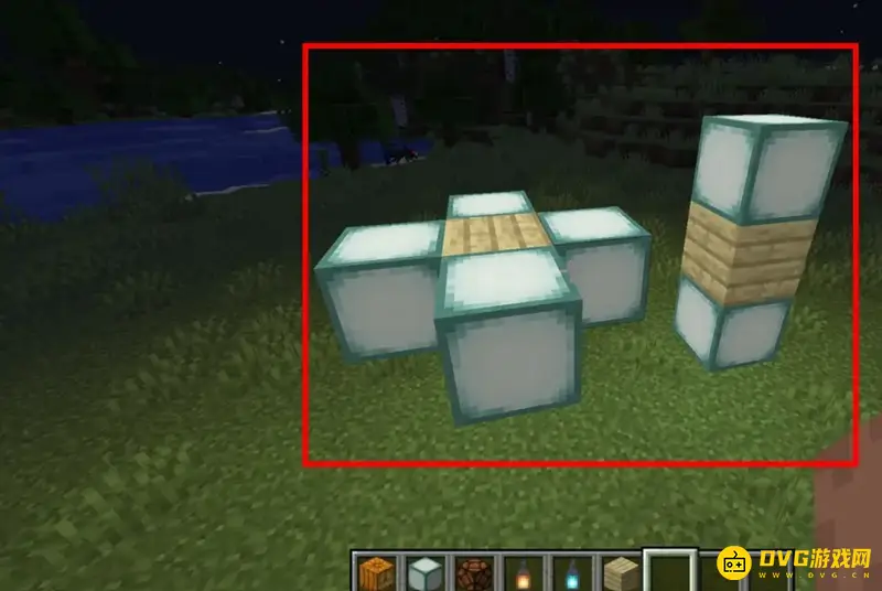 4、挂海晶灯的方式:海晶灯和南瓜灯类似属于自发光方块,六个方向都可以挂。