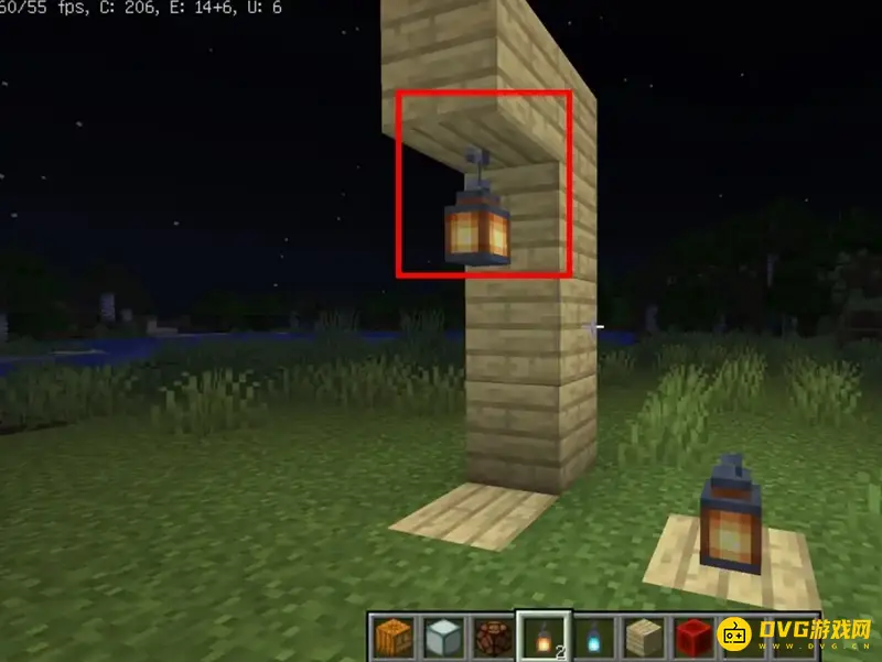 1、挂灯笼的方式:灯笼是特殊物品,只有两种方式可以挂,一是悬挂(顶部必须有方块),二是放置(底部必须有方块)。
