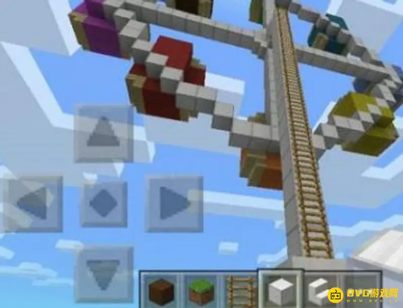 ①构建摩天轮的框架,首先我们用白色方块竖直垒上去,形成摩天轮的支柱。