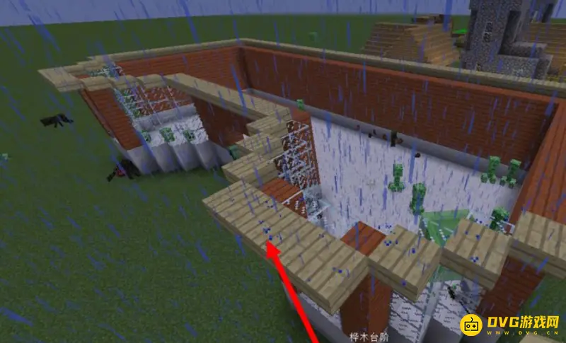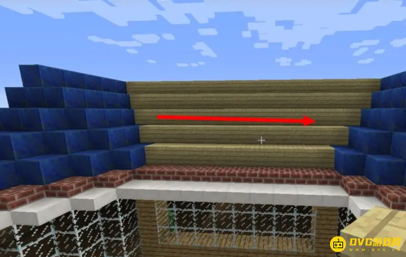 10、等到两边做完后,中间正门的上边还是露天的,这样再用一种方块也是按照阶梯式的方式盖起来,但是方向要和两边的垂直。