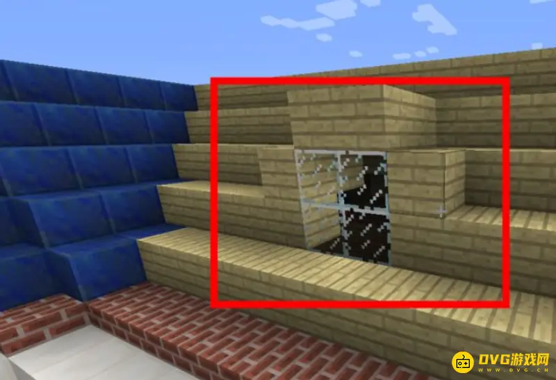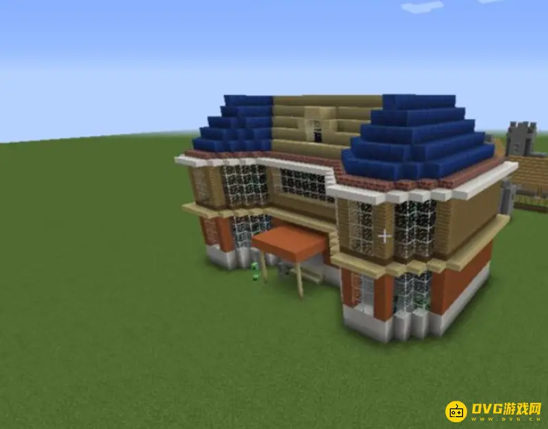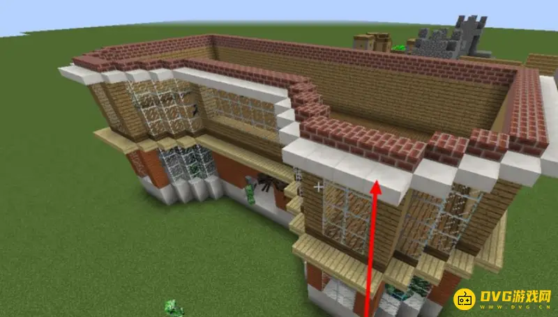 9、然后沿着顶部的青金石块向后做,一直到屋后,在屋后可以加上个窗户增加美观。