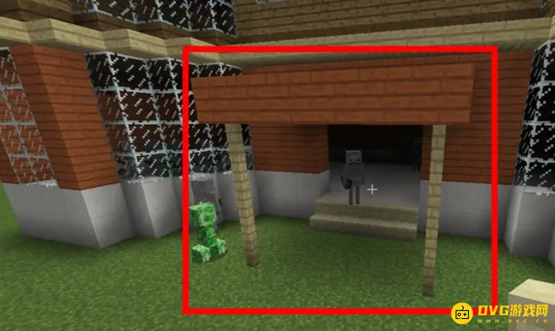 12、在大门的前面再造一个门檐,用栅栏当做柱子就行。