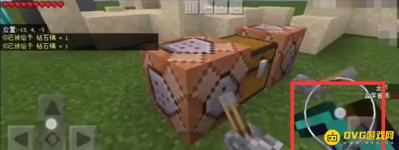 4、切换成钻石镐后,即可攻击物品,能被钻石镐破坏的物品,均可被破坏。