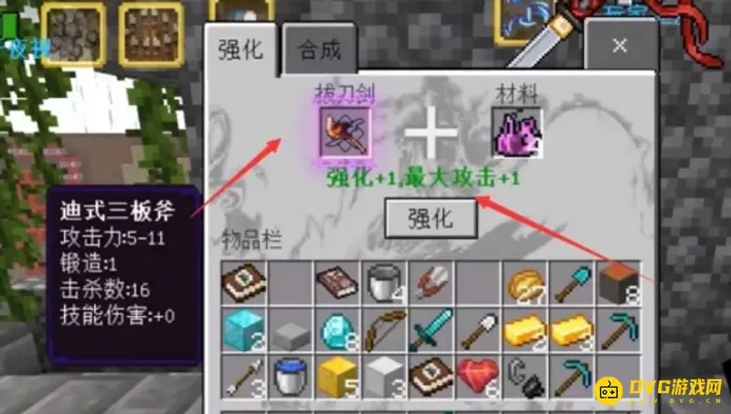 4.点击”强化“,强化升级成功即可增加武器的属性。