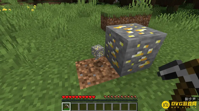 2、可以看到,玩家使用铁稿可以很快将金矿石挖取下来。