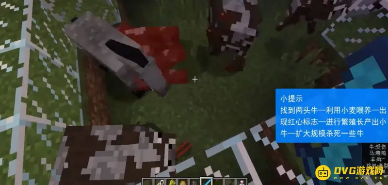 2.用小麦分别喂养两头“成年牛”,会出现“红心”标志,之后会进行繁殖。
