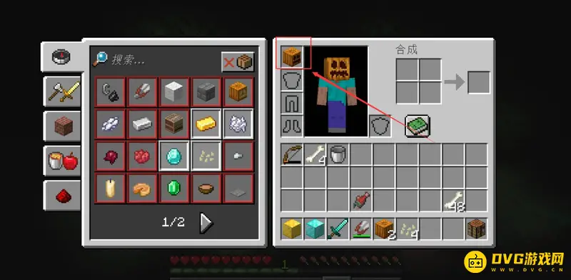 3.获得【雕刻过的南瓜】,也就是南瓜头。
