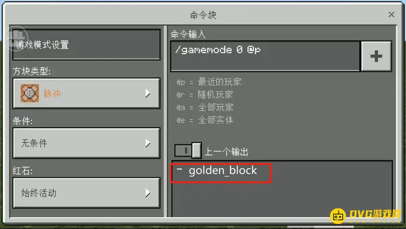我的世界获得金块的指令是golden_block或者前面加minecraft:,在我的世界(Minecraft)里面,金块的代码是41。一个金块需要9个金锭来合成,金锭也可以通过挖金原矿获得。