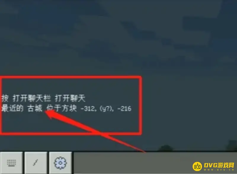 1、打开工具栏,点击聊天栏,输入古城地点指令。