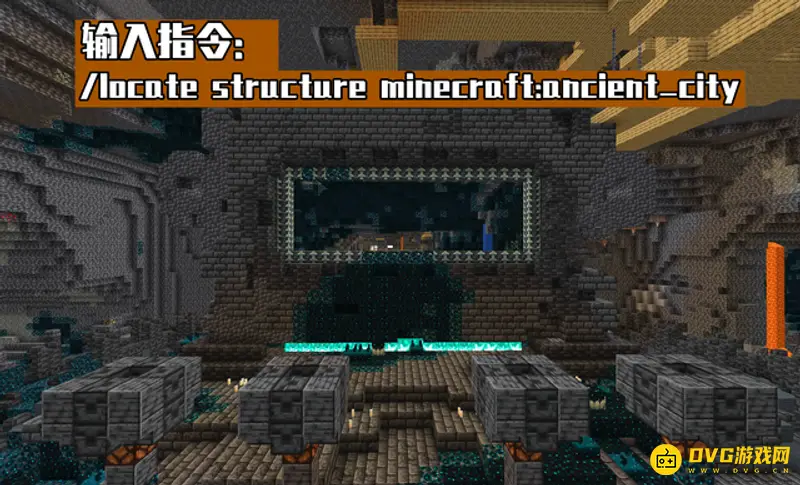 3、最后,传送到古城地点,就能发现古城。注意:古城会随机生成在100格的高山之下的地底,用指令找是最方便的。