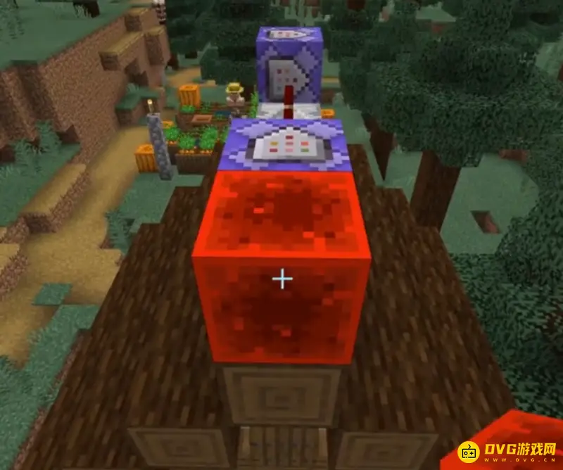 3.放置一个红石比较器,两个红石中继器,将中继器调整为2档;