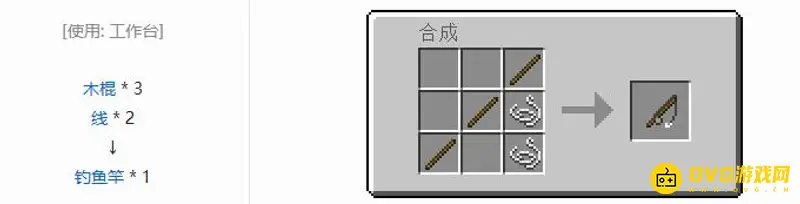 4,如果要合成钓鱼竿的话,使用三根木棍和两根线就可以合成钓鱼竿了。
