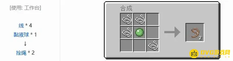 5,同样如果要合成拴绳,使用四根线和一个黏液球就可以合成拴绳了。
