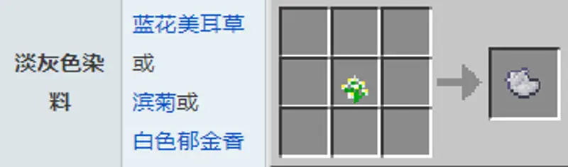 将蓝花美耳草、滨菊、白色郁金香的其中之一放入工作台,即可获得淡灰色染料。