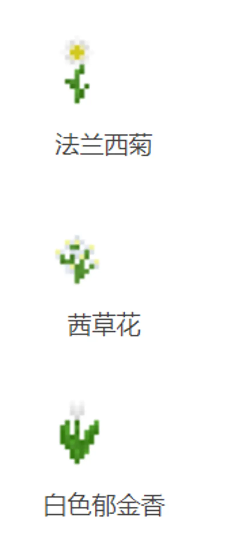 二、找到茜草花(蓝花美耳草)或者法兰西菊(滨菊)或者白色郁金香。