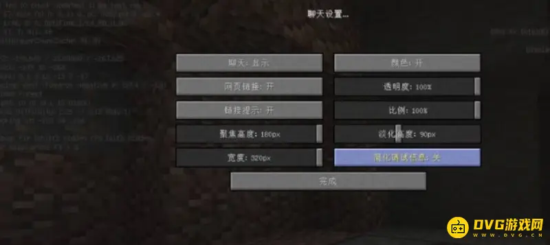 1.首先进入我的世界游戏之后,按Esc,打开选项,打开聊天设置/多人游戏设置,有一个简化调试信息选项,点击就可以了,如图所示。