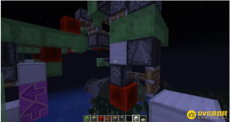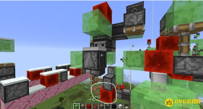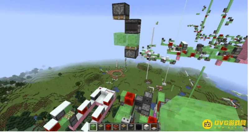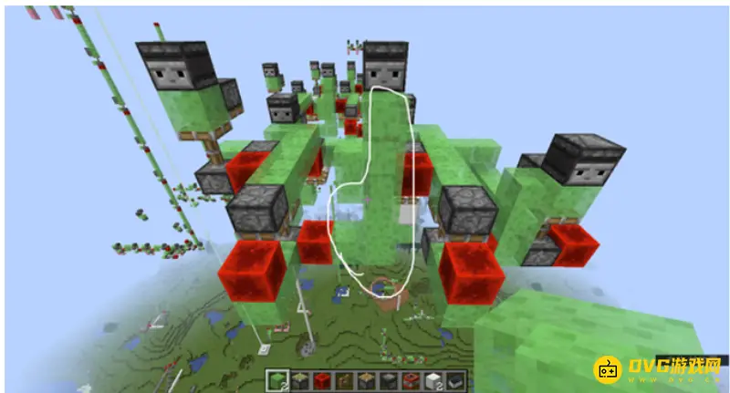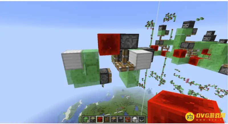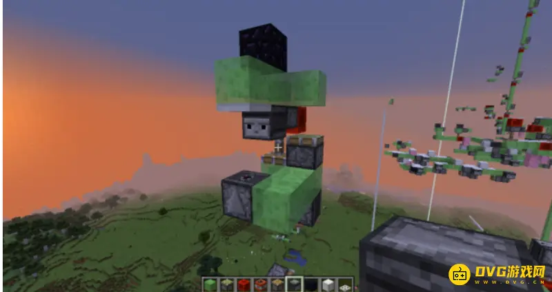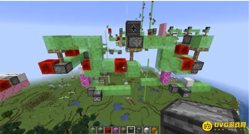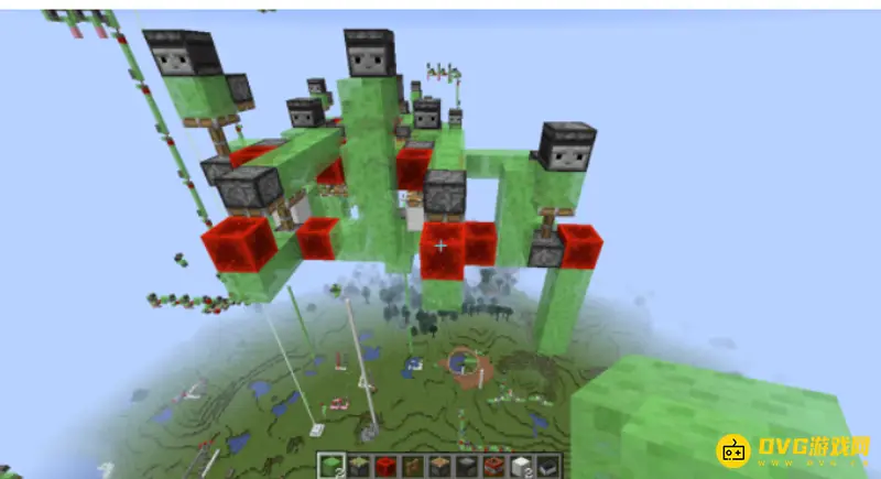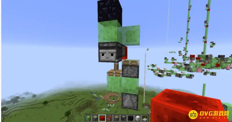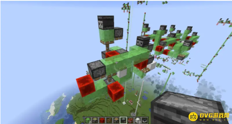 9、最右边的红石块连接主体框架,当它下移的时候,整体TNT轰炸机都会下移。至此世界吞噬者便完成了。